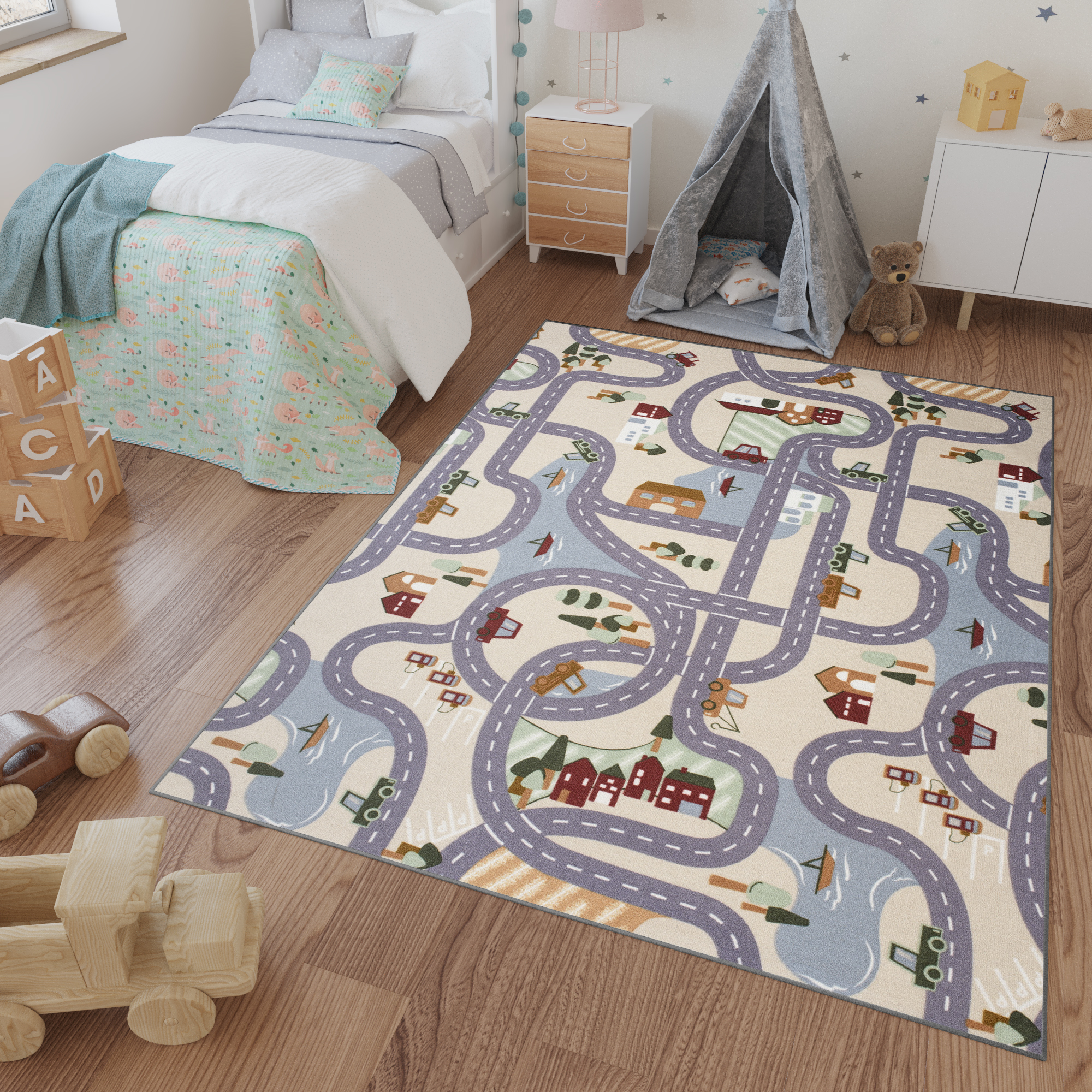 WYKŁADZINA DYWANOWA DZIECIĘCA ULICE SCANROAD 4m szer. KOLOROWA
